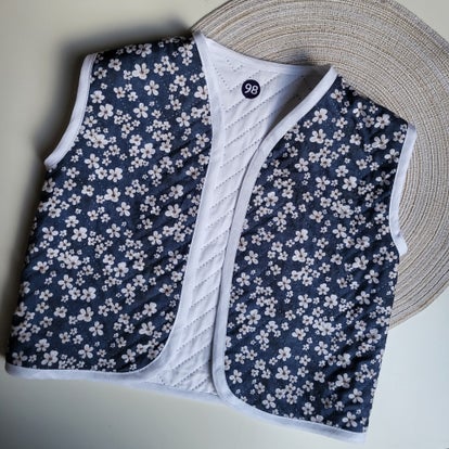 Een mooi en uniek gilet van een gequilt stofje met kleine bloemetjes!