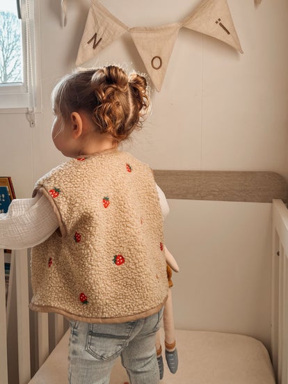 Een super zacht en fijn gilet. Teddy bloemenstof aan de buitenkant en een katoenenstof aan de binnenkant. Perfect om een outfit af te maken!