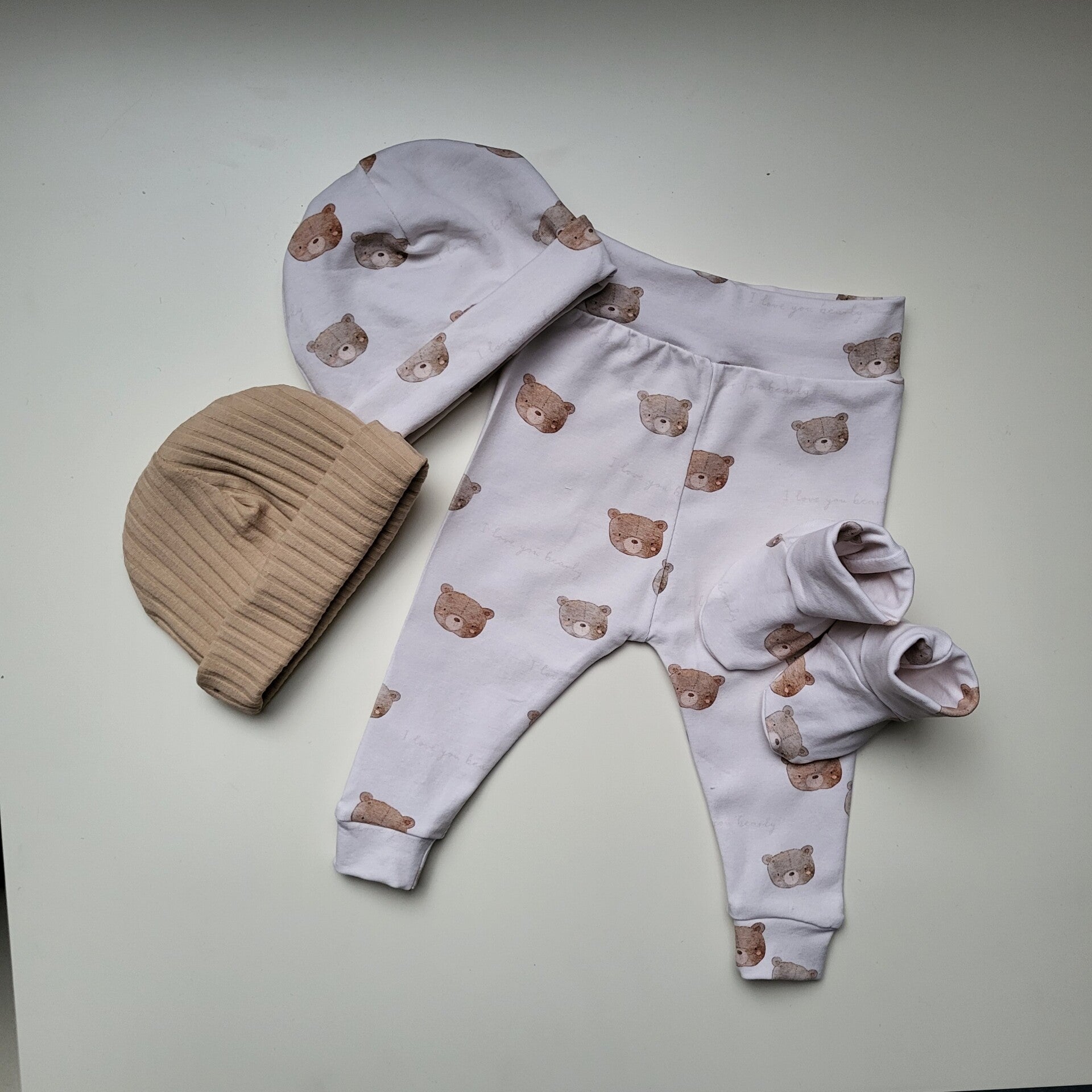 1 mutsje, slofjes en broekje beertjes