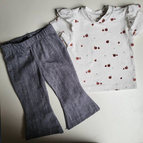 Een stof in een jeanslook. De stof zelf is rekbaar en zacht.