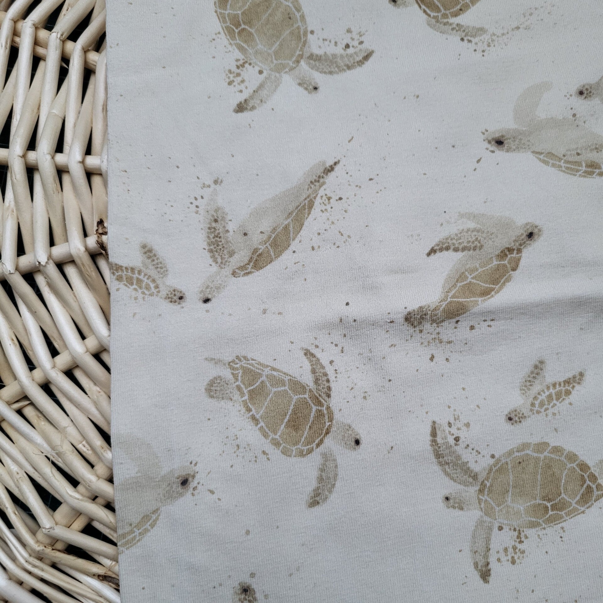 Een stofje met schildpadden.