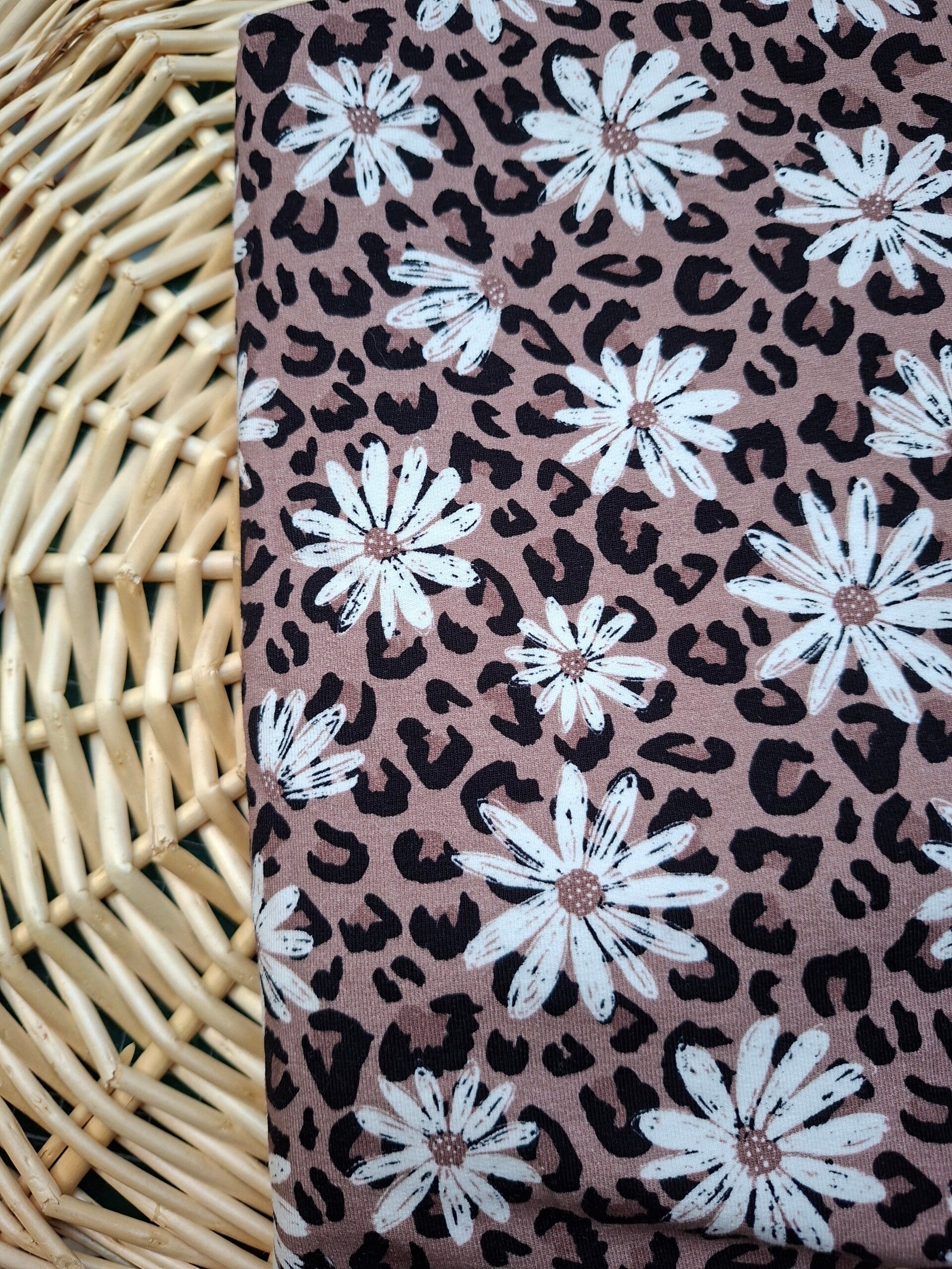 Een tof stofje met bloemetjes en panterprint.