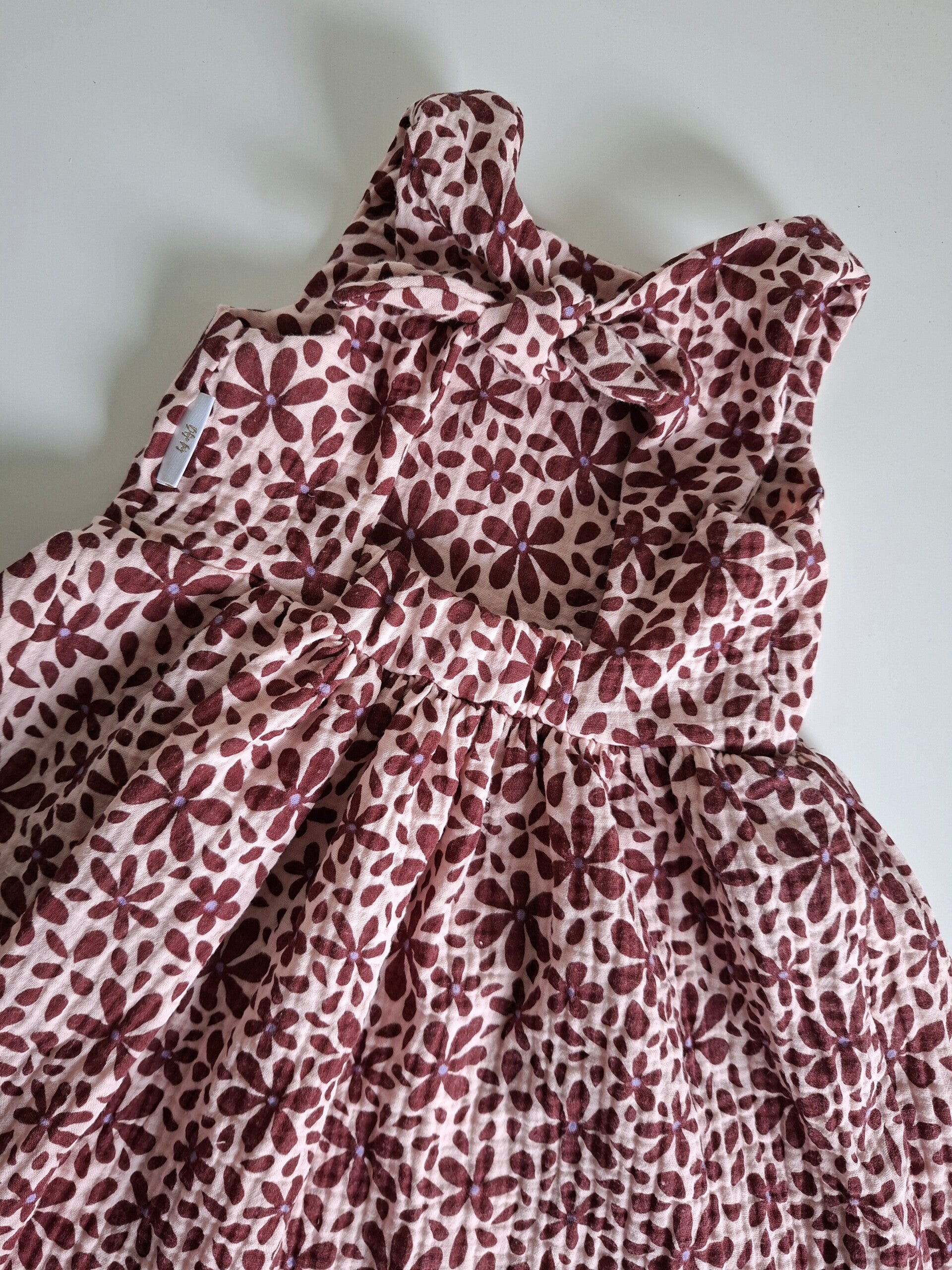 Jurkje Lot in hydrofiel bordeaux bloemen. Maat 92/98.